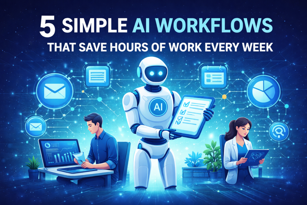 In this article, we will explore five simple AI workflows that anyone can use to increase productivity, reduce repetitive work, and operate more efficiently in both personal and professional environments.
