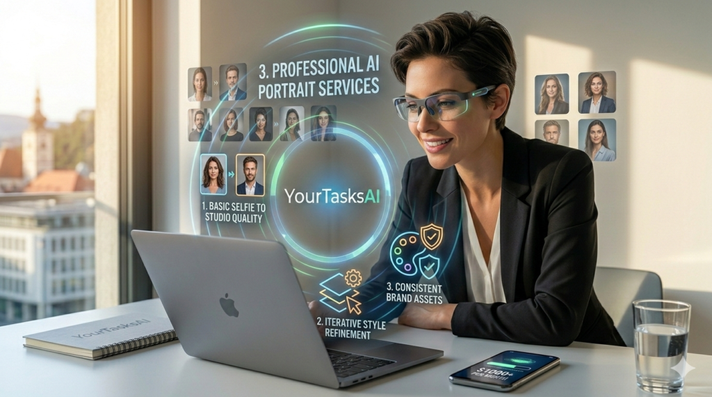 • The Workflow: Use AI image generators to transform a customer’s basic selfie into a professional studio-quality portrait.
